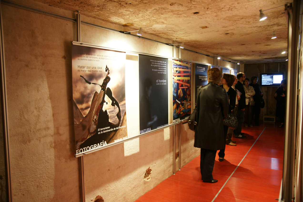 Panorámica de la sala de exposiciones del museo municipal de Albacete, y aspecto de parte de la exposición del Colectivo Cillero «De lo que llamamos Paz». 23 May 201123 May 2011 / manuelruizfotografo / Deja un comentario