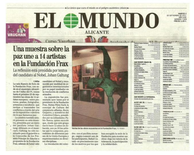 Artículo del periodico «El Mundo «, edición digital ,haciendose eco de la exposición del Colectivo Cillero en la Fundacion Frax en El Albir , Alicante , aquí teneis el enlace , Saludos 10 Sep 201123 Sep 2011 / manuelruizfotografo / Deja un comentario http://www.elmundo.es/elmundo/2011/09/06/alicante/1315305602.html